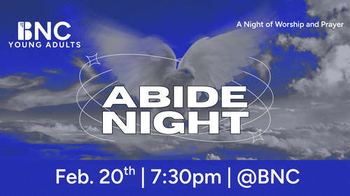 Join us for our monthly worship night called "Abide Night". We abide in Christ by worshipping Him, seeking Him in prayer, and growing closer to Him through His word.
